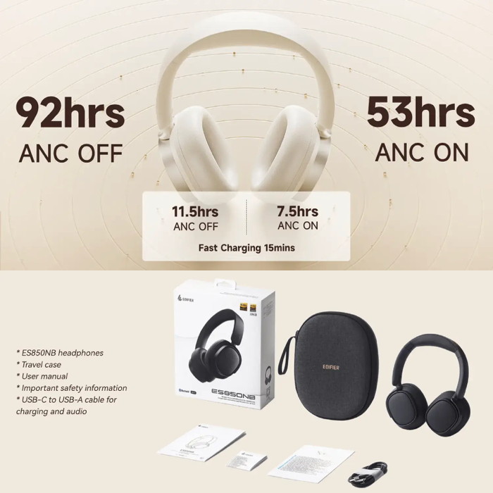 Edifier 'ES850NB' Wireless Noise Cancelling Over-Ear Headphones / Ivory