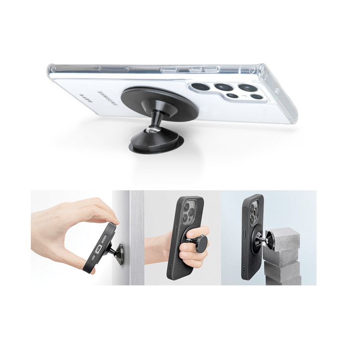 Αυτή η μαγνητική βάση είναι μια λύση γρήγορης τοποθέτησης, καθιστώντας την ιδανική για το γυμναστήριο, την κουζίνα, το εργαστήριο ή οποιοδήποτε μέρος με μεταλλικές επιφάνειες. Η ελεύθερη περιστροφή 360° και το εύκολα ρυθμιζόμενο περιστρεφόμενο πόδι σάς επιτρέπουν να τοποθετείτε το τηλέφωνό σας σε οποιαδήποτε γωνία επιθυμείτε, ιδανικό για λήψη βίντεο hands-free ή για την παρακολούθηση συνταγών στην κουζίνα. Το ισχυρό μαγνητικό κούμπωμα, σε συνδυασμό με το στιβαρό μεταλλικό σώμα της, εξασφαλίζει ασφαλή και αξιόπιστη λαβή στη συσκευή σας. Επιπλέον, είναι συμβατή με θήκες MagSafe, προσφέροντας ακόμη μεγαλύτερη άνεση και ευελιξία. Διαθέτει μεταλλικό δακτύλιο που την καθιστά χρήσιμη με οποιοδήποτε smartphone και 2 αυτοκόλλητες μεταλλικές πλάκες που μπορείτε να τοποθετήσετε για να μετατρέψετε οποιαδήποτε επιφάνεια σε μεταλλική που λειτουργεί με τη βάση FLEXI MOUNT.