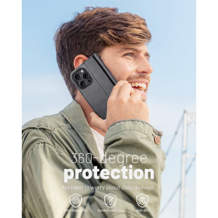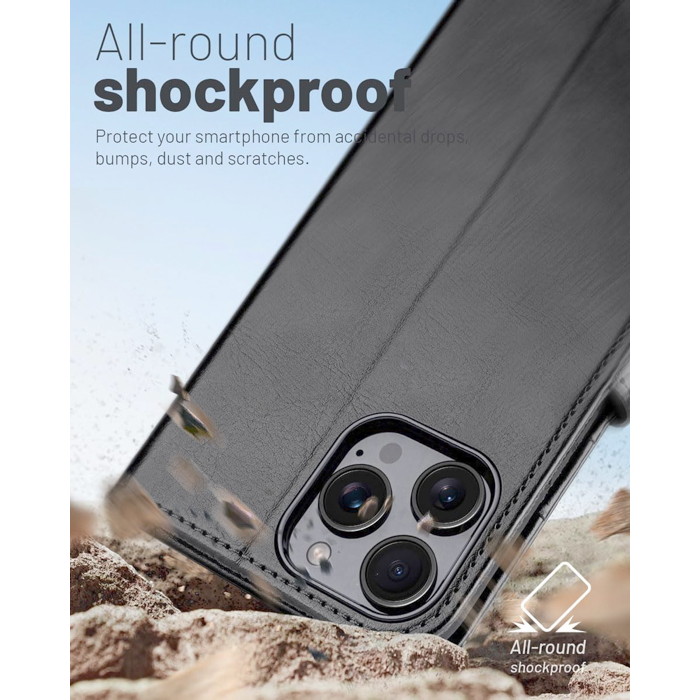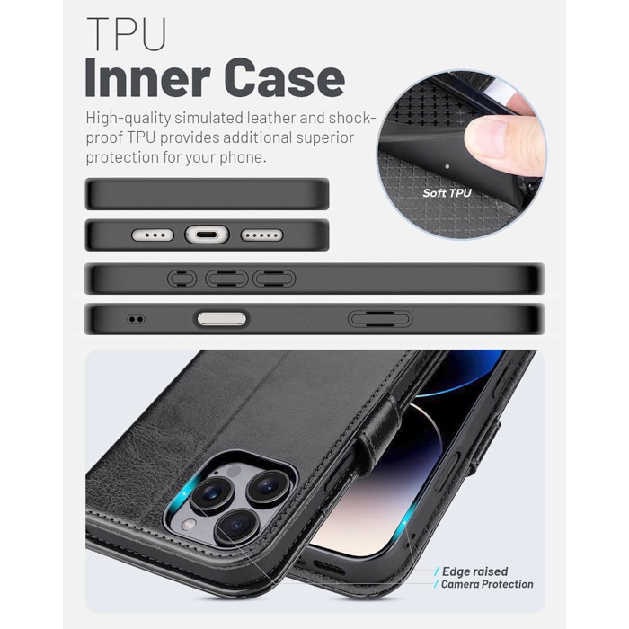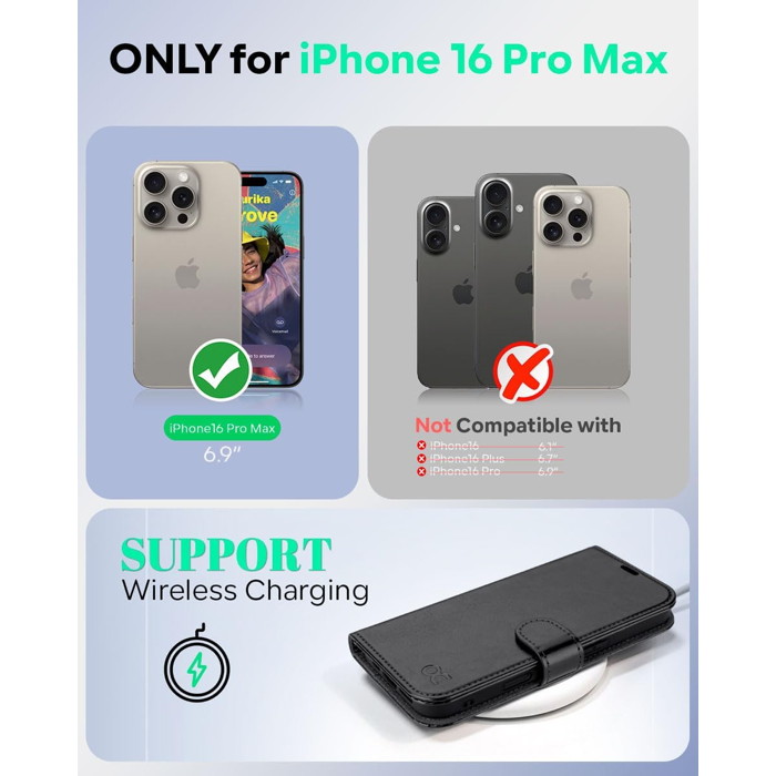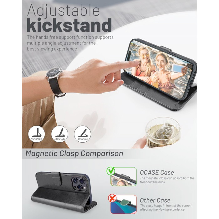 Ocase Leather Wallet for iPhone 16 Pro Max / Black