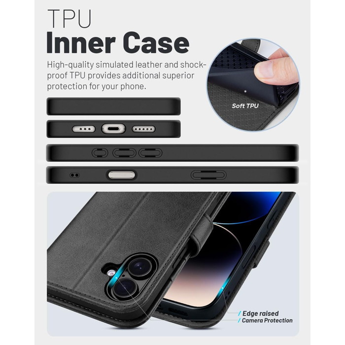 Υλικά υψηλής ποιότητας. Η θήκη iPhone είναι χειροποίητη με εξαιρετικά ανθεκτικό δέρμα, ενώ η εσωτερική θήκη είναι κατασκευασμένη από ρητίνη σιλικόνης TPU. Είναι εξαιρετικά ανθεκτική στους κραδασμούς και προστατεύει από βρωμιά, βαθουλώματα και γρατζουνιές. Παρέχει μέγιστη προστασία για το τηλέφωνό σας.