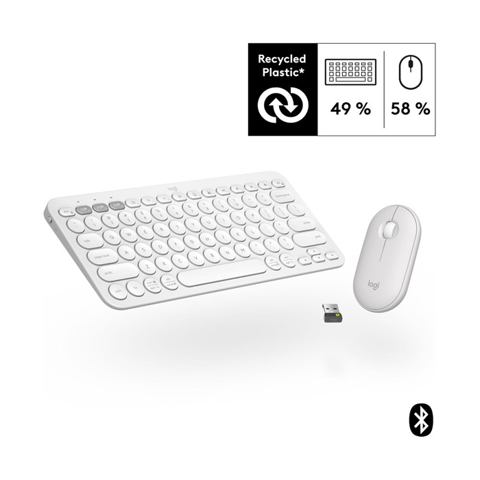 Logitech 'Pebble 2 Combo' Multi-Device Bluetooth Keyboard and Mouse / Tonal White