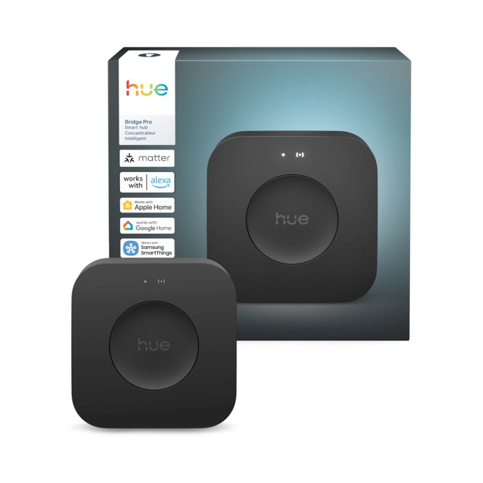 Το Philips Hue Bridge Pro είναι ένας μικρός έξυπνος οικιακός κόμβος με βαθμολογία IP20. Λειτουργεί στη ζώνη συχνοτήτων Zigbee, υποστηρίζοντας έως και 150 φώτα, 50 αξεσουάρ και προηγμένες λειτουργίες όπως το MotionAware™ για ανίχνευση κίνησης χωρίς αισθητήρα χρησιμοποιώντας ομαδοποιημένα φώτα. Υποστηρίζει επίσης το Hue Sync για εμβύθιση στα πολυμέσα και βελτιωμένη κρυπτογράφηση Zigbee Trust Centre συμβατή με Apple Home, Alexa, Google Assistant και SmartThings. Σχεδιασμένο για ονομαστική διάρκεια ζωής 25.000 ωρών, επιτρέπει ταχύτερη αποθήκευση/εκτέλεση σκηνών και αυτοματισμούς σε μεγαλύτερες εγκαταστάσεις.