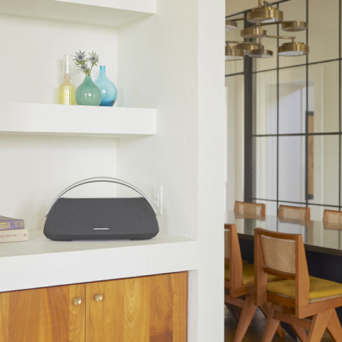 Ειδικός σχεδιασμός, κομψά κατασκευασμένος με υλικά υψηλής ποιότητας. Το Go + Play 3 της Harman Kardon έχει ένα οικείο σχήμα, αλλά στην τελευταία του γενιά διαθέτει μια οθόνη αφής από σκληρυμένο γυαλί που είναι ευαίσθητη και εντελώς διαισθητική στη χρήση. Το ύφασμα της μάσκας είναι διακριτικά εντυπωσιακό και η κομψή αλλά στιβαρή λαβή αλουμινίου υψηλής ποιότητας είναι εργονομικά σχεδιασμένη για να διευκολύνει τη μεταφορά στο σπίτι σας.