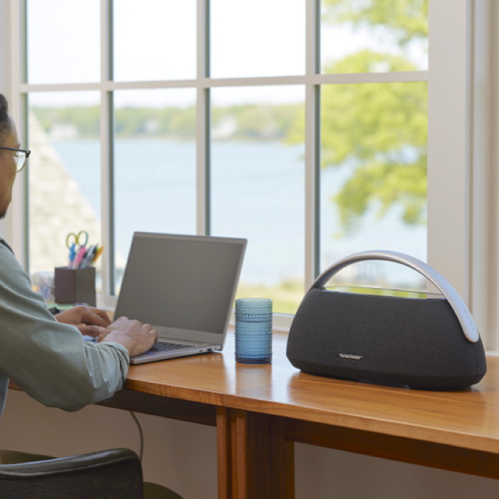 Κομψός σχεδιασμός και εξαιρετικός ήχος—σε εσωτερικό ή εξωτερικό χώρο. Με την εκλεπτυσμένη σιλουέτα του, την στιβαρή, υψηλής ποιότητας λαβή αλουμινίου και την οθόνη αφής από σκληρυμένο γυαλί, ο κομψός σχεδιασμός του Harman Kardon Go + Play 3 φαίνεται όμορφος και ακούγεται ακόμα καλύτερα—χάρη στην υψηλή απόδοση και τον κρυστάλλινο τριφασικό στερεοφωνικό ήχο. Επιπλέον, συντονίζεται αυτόματα στο νέο περιβάλλον του, έτσι ώστε η μουσική σας να ακούγεται πάντα η καλύτερη δυνατή. Η ενσωματωμένη μπαταρία 8 ωρών θα σας βοηθήσει για μια ολόκληρη εργάσιμη ημέρα και η εύχρηστη θύρα φόρτισης USB θα εμποδίσει το τηλέφωνό σας να μείνει αφόρτιστο στη μέση της λίστας αναπαραγωγής σας με βαθιά εστίαση. Και ακόμα κι αν κάθεστε απέναντι από το τραπέζι κατά τη διάρκεια της επόμενης τηλεδιάσκεψης, τα ενσωματωμένα διπλά μικρόφωνα σημαίνουν ότι θα ακούγεστε δυνατά και καθαρά. Θέλετε ακόμα περισσότερα; Συνδέστε ασύρματα δύο Go + Play 3 για το επόμενο πάρτι σας. Το Harman Kardon Go + Play 3 είναι το ηχείο που είναι πάντα εκεί για εσάς.