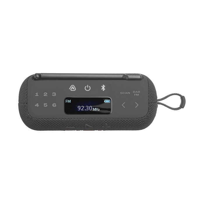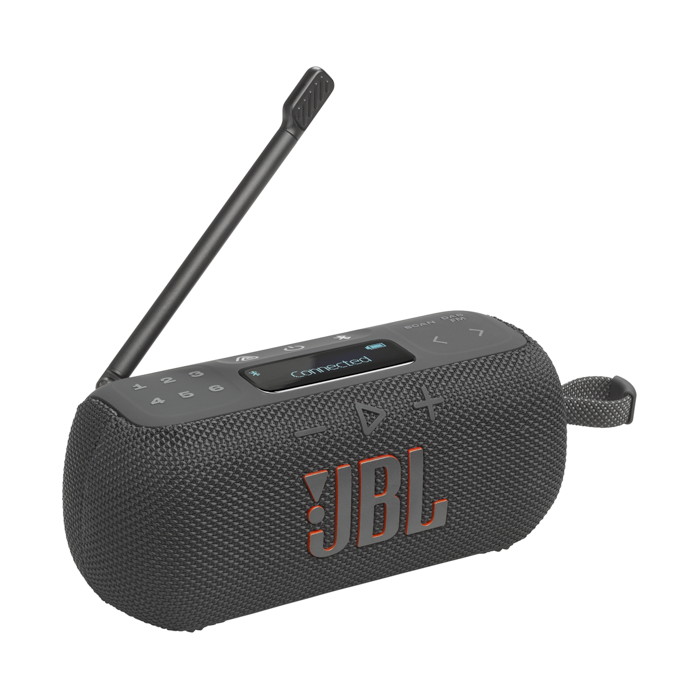 Φορητό ψηφιακό ραδιόφωνο που υποστηρίζει DAB/DAB+/FM, Bluetooth streaming και είναι αδιάβροχο/ανθεκτικό στη σκόνη με βαθμολογία IP68. Χρησιμοποιεί Auracast™ για στερεοφωνική σύζευξη ή σύνδεση πολλαπλών ηχείων. Διαθέτει 6 κουμπιά άμεσης προεπιλογής, μεγάλη οθόνη LCD, στιβαρό λουρί μεταφοράς, προσαρμογή EQ μέσω της εφαρμογής JBL. Προσφέρει έως και 15 ώρες χρόνο αναπαραγωγής (12 ώρες + 3 ώρες Playtime Boost).