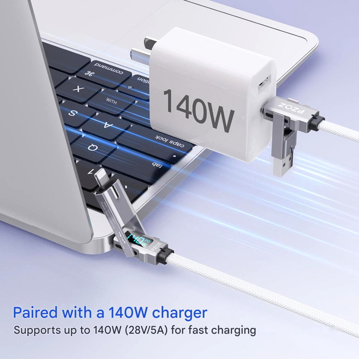4 Λειτουργίες Ελεύθερη Εναλλαγή: Σε συνδυασμό με φορτιστή 140W, ισχύς φόρτισης USB C σε USB C έως 140W, ισχύς φόρτισης USB A σε USB C έως 140W, ισχύς φόρτισης USB C σε Lightning έως 27W, ισχύς φόρτισης USB A σε Lightning έως 12W. Το καλώδιο φόρτισης PZOZ είναι κατασκευασμένο από κράμα ψευδαργύρου υψηλής ποιότητας και ανθεκτικό νάιλον, μετά από δοκιμή υψηλής αντοχής και κάμψης υψηλής συχνότητας. Τα έξυπνα τσιπ διασφαλίζουν την καλή λειτουργία της μπαταρίας.