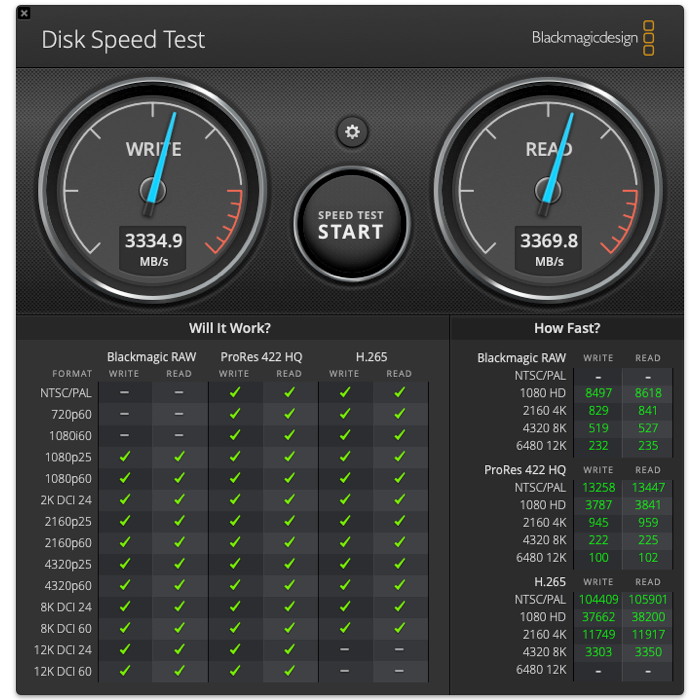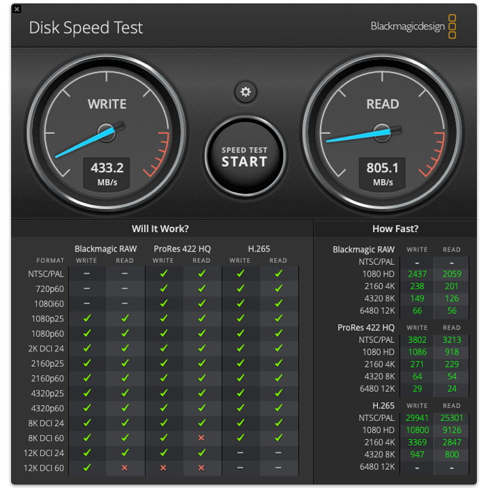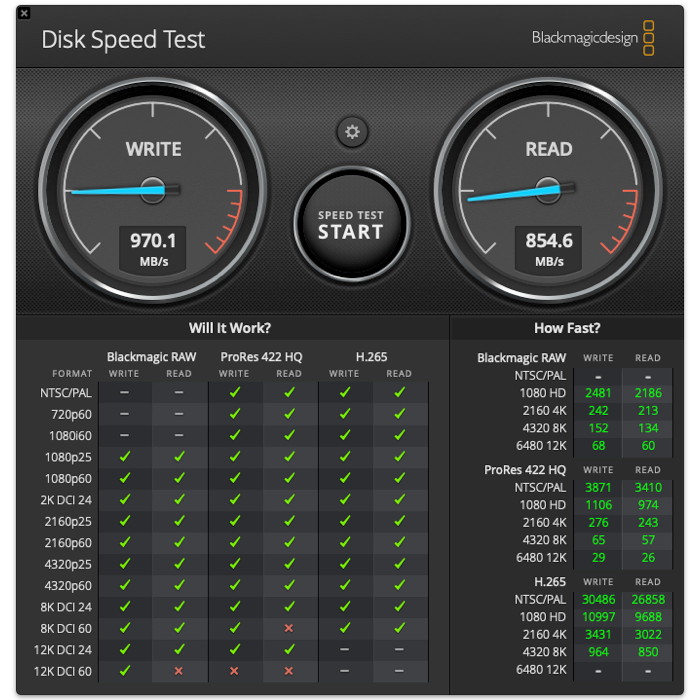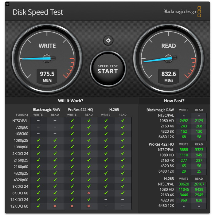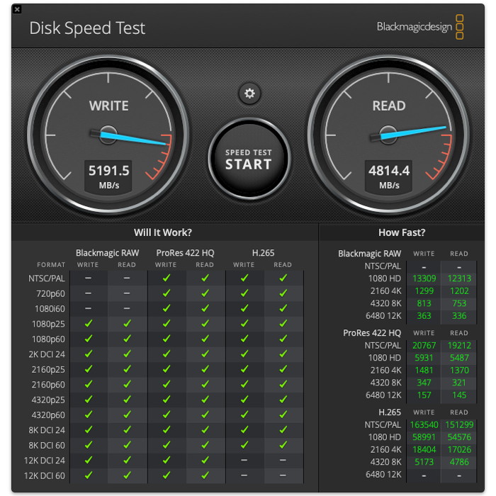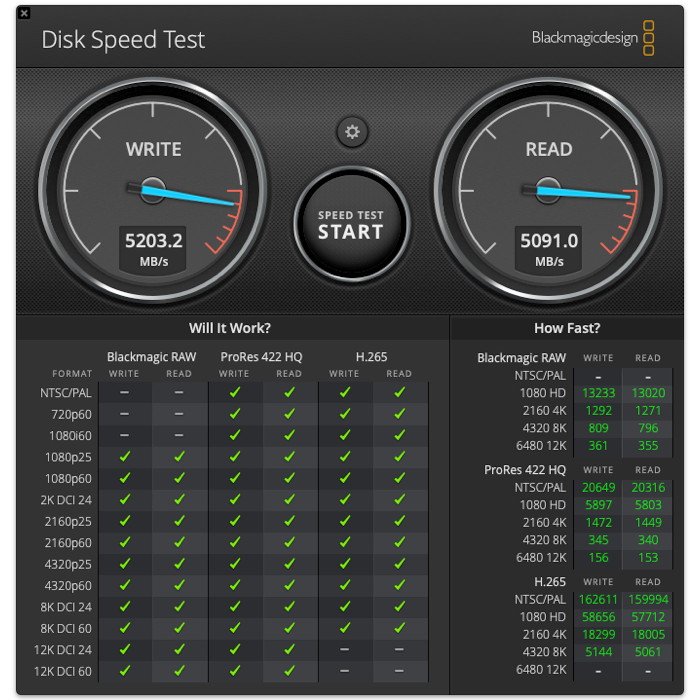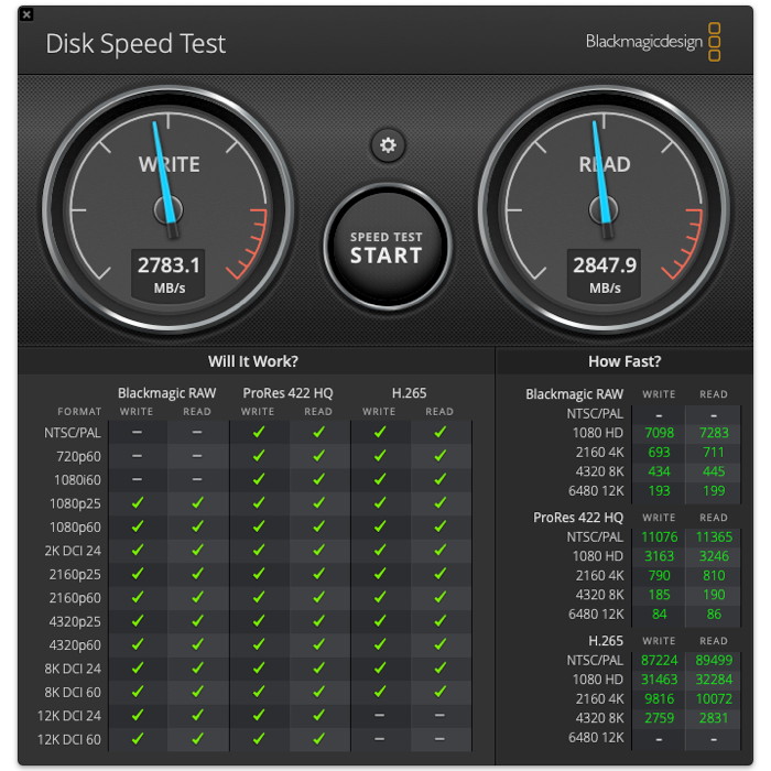 Μετρήσεις ταχύτητας δίσκων SSD με το Blackmagic Disk Speed Test.