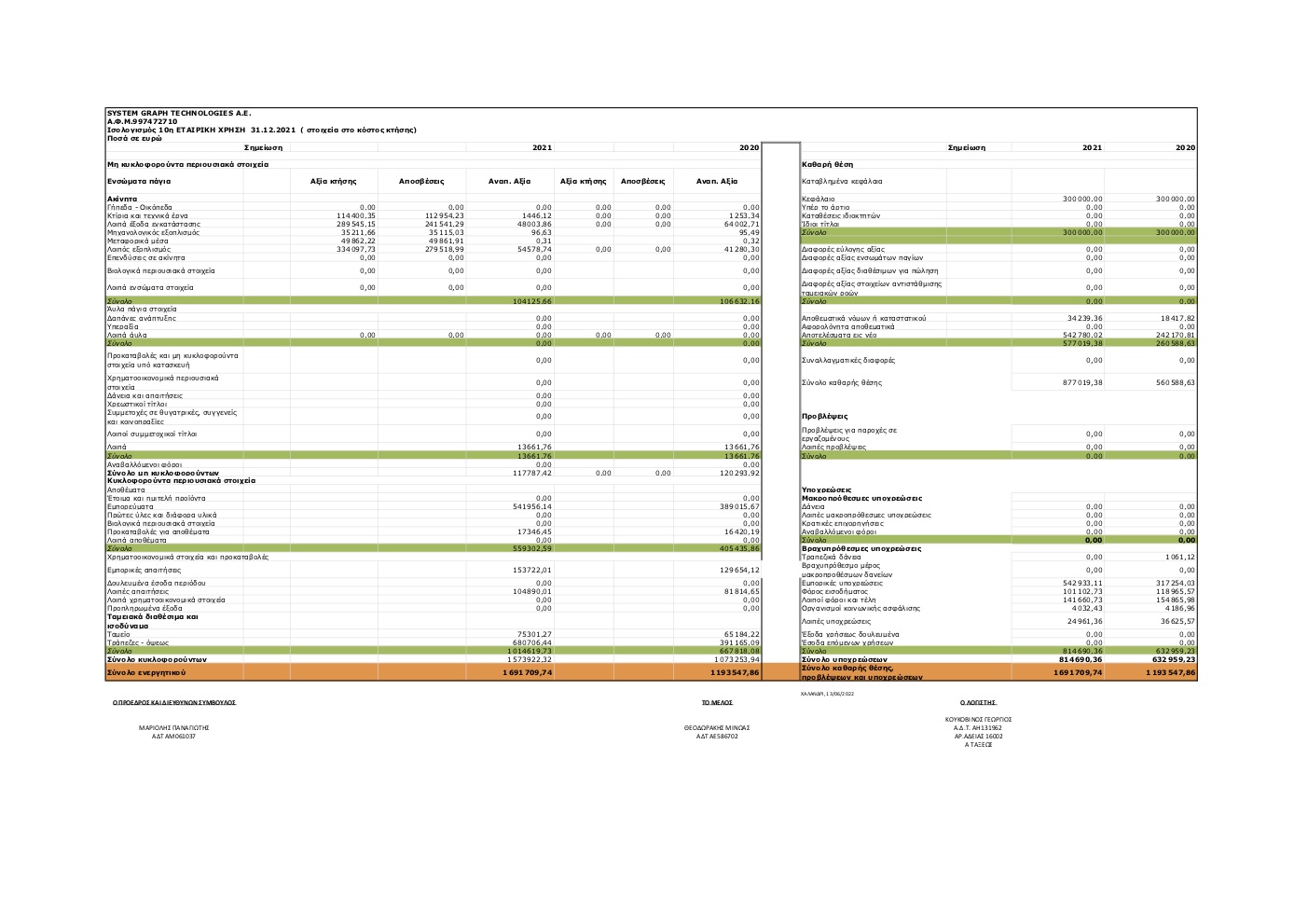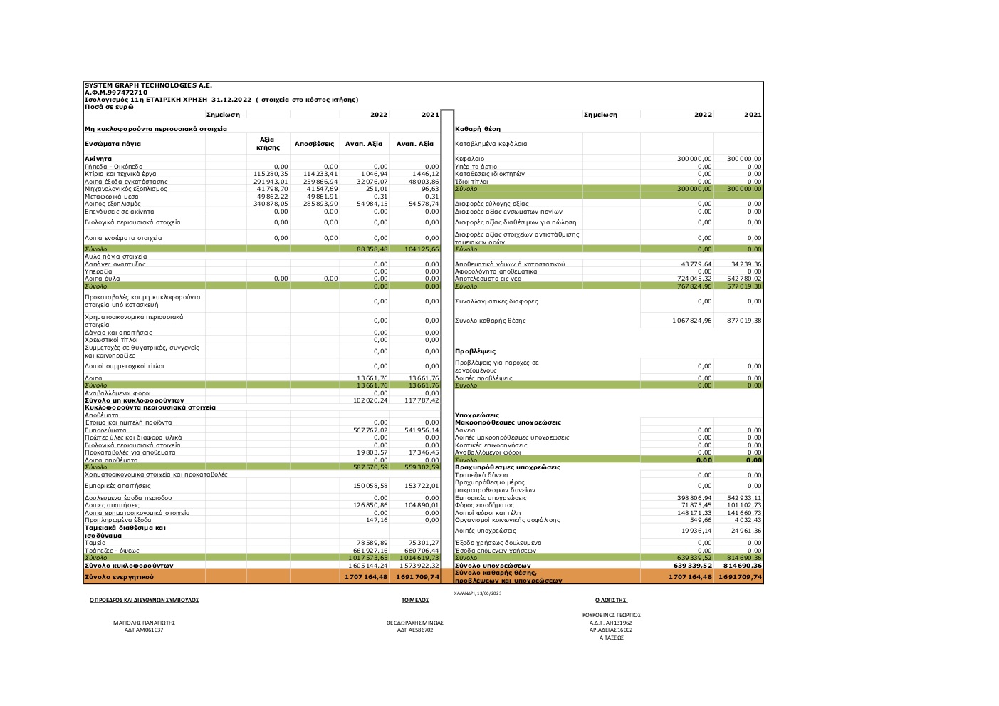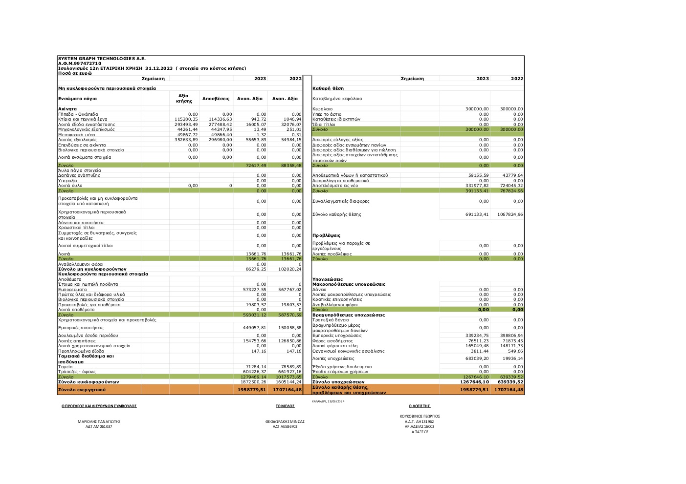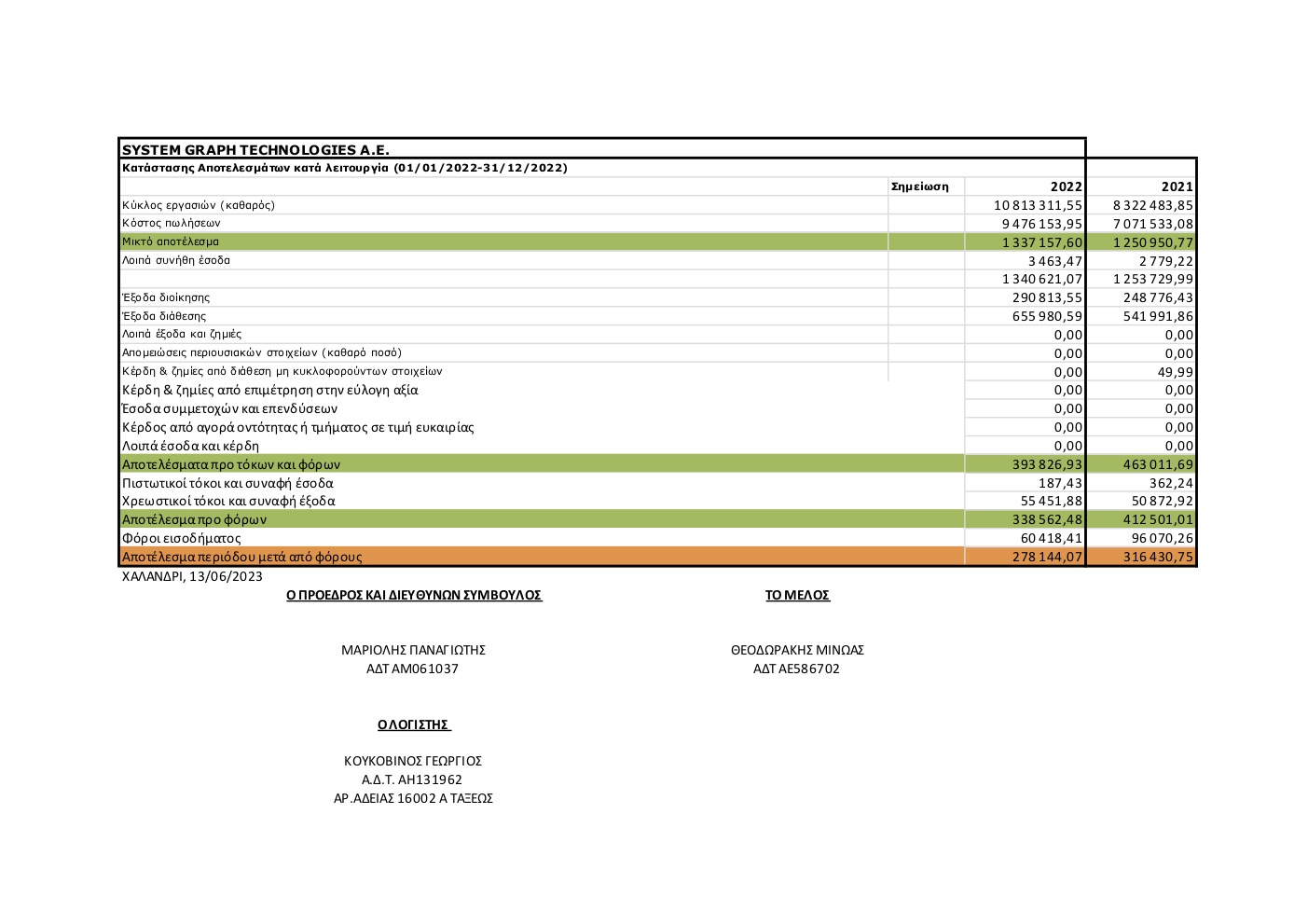Η System Graph Technologies (iSystem) το 2024 κατέγραψε ενοποιημένες πωλήσεις €14 εκατ., με EBITDA €509 χιλ., κέρδη προ φόρων €435 χιλ. και καθαρά κέρδη €335 χιλ.. Σε σύγκριση με το 2023, οι πωλήσεις αυξήθηκαν κατά 35,8%, η λειτουργική κερδοφορία κατά 10%, ενώ τα κέρδη προ και μετά φόρων ενισχύθηκαν κατά 9%.