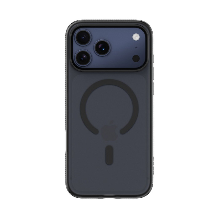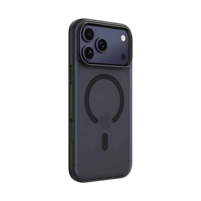 Protective case for the iPhone that features an anti-slip textured bumper for a secure grip and a translucent, soft-touch matte finish. It is engineered with shock-absorbing materials and reinforced corners to provide military-grade drop protection up to 2 meters. The design includes raised bezels for camera and screen safety, polished tactile buttons, and a touch-sensitive Camera Control button. It is fully compatible with MagSafe and Qi2 wireless charging accessories.