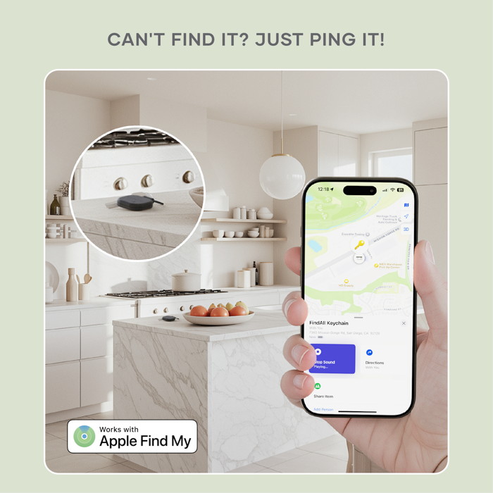 Find My Compatibility. Streamline your day and avoid delays with the Find My app. Simply ping your keychain to trigger an audible alert and get precise directions to its location. Plus, stay one step ahead with notifications that let you know if you’ve left your keychain behind.