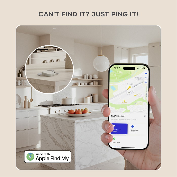 Find My Compatibility. Streamline your day and avoid delays with the Find My app. Simply ping your keychain to trigger an audible alert and get precise directions to its location. Plus, stay one step ahead with notifications that let you know if you’ve left your keychain behind.