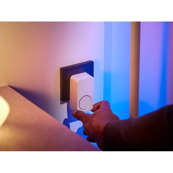 Upgrade your home security with the Hue Smart Chime. Get sound alerts when someone rings the doorbell, no matter where you are. It’s super easy to set up – just plug it in and choose your favourite tune. It works perfectly with your existing Philips Hue system, which helps keep your home safe, day and night.