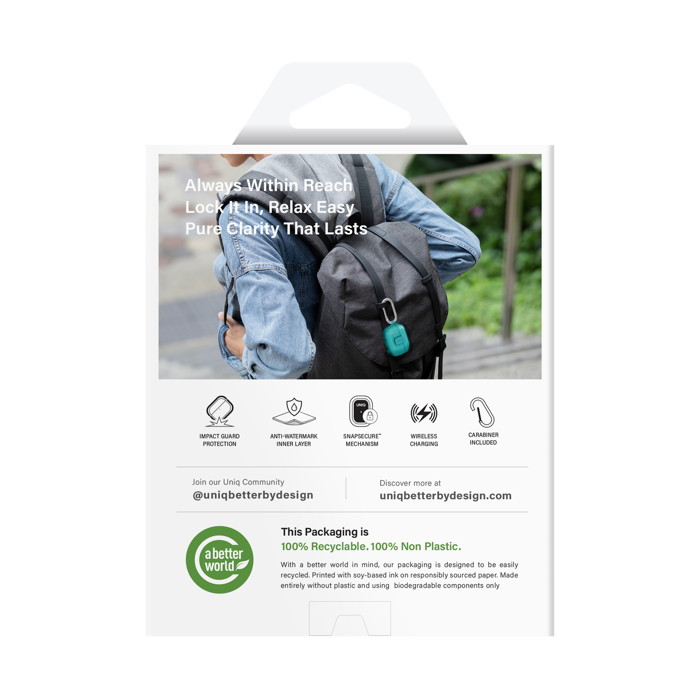 A thoughtfully crafted blend of clarity and color. This ultra-clear case adds a splash of personality while remaining fully compatible with both wired and wireless charging. Designed with a secure locking closure to keep your AirPods protected on the go, and finished with a premium aluminium carabiner for effortless carry. Precision cutouts at the base allow for clear, uninterrupted sound, while the inner anti-watermark finish keeps your case looking crystal-clear and smudge-free.