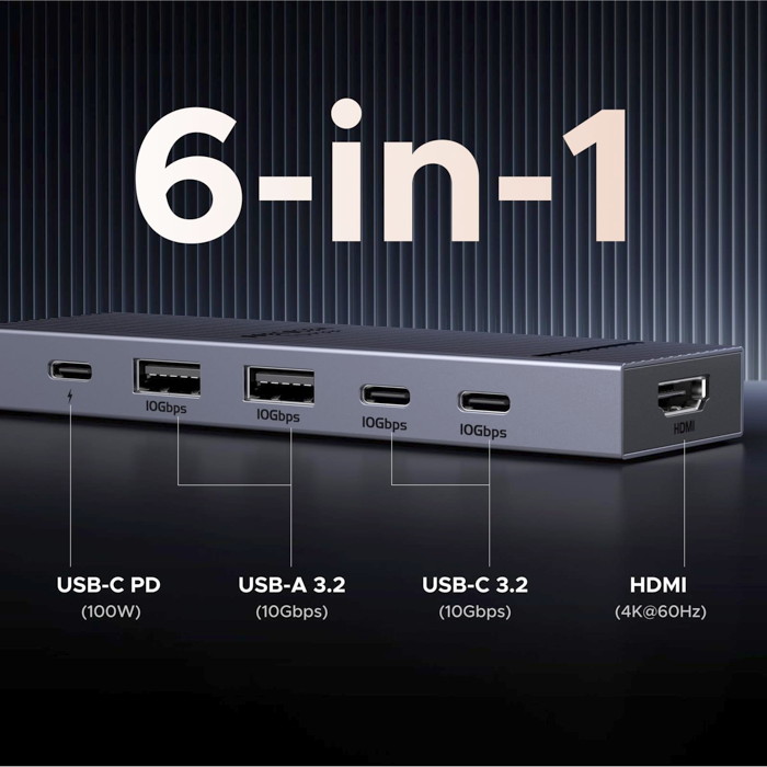 UGreen 'Revodok Pro 106' 6-in-1 USB-C Hub / HDMI 4K@60Hz / 2xUSB-A 3.2 / 2xUSB-C 3.2 / 1xUSB-C PD 100W
